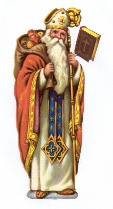 |  La Mémère est sortie dans la nuit tombante et sous la neige et le vent pour déposer la bongeotte sur la planche à laver sous l'abri de la fontaine. Et nous avons scruté par toutes les fenêtres, le moindre mouvement sur le chemin, nous écoutions aussi le moindre bruit. Et ce sont les brailleries du père fouettard qui nous sont parvenues en premier: une frayeur générale, une telle frayeur que le gros Mimi en a fait pipi dans le pantalonsitôt que l'affreux homme s'est engouffré dans la cuisine. La Mémère lui a dit qu'il n'avait rien à faire dans cette maison, qu'il n'y avait personne à fouetter. Elle lui a pris rageusement la brassée de genêts qu'il portait en lui disant qu'avec cela elle allait se faire un balai. Et elle a envoyé le méchant homme dans la chambre de derrière avec un bol de tisane. Mais j'avais bien senti le parfum du vin chaud et je trouvais étrange que la Mémère le maltraite verbalement, qu'elle l'isole dans une pièce mais qu'elle lui donne du vin chaud!!.... Et là, nous tous, autour de Saint-Nicolas:l e paradis!!! Il nous connaissait tous ,savait tout de nous: les gros mots du Néné les coups de pieds du Jany..... Mais il grondait tellement gentiment!! Et puis il a fait des compliments à toutes les filles !! sauf à la Gilles un peu trop bavarde à l'école et à la Josy qui se faisait remarquer aux vêpres. Saint-Nicolas n'était pas bien riche cette année là comme les précédentes d'ailleurs: c'était deux pâtes de fruit, 4 petits carrés de chocolat noir et une toute petite poignée de sucre candy chacun. Il portait une soutane verte en satin magnifique qui sentait l'encens, un surplis délicatement ajouré et brodé d'épis de blé et la mitre et la crosse semblaient être en or . Il avait aussi une bague violette énorme qu'il nous a mis au pouce chacun son tour. Et surprenant: à chacun de nous, il a donné un message à transmettre aux parents et aux invités de la veillée. Incroyable, il savait tout de nous et de nos familles!! Il a bu un grand bol de vin chaud, mangé un p'tit bout de gâteau. Il nous a tous embrassé et est allé chercher père fouettard qui semblait sortir du lit .Ils ont récupéré la bourrique dans la grange et la corbeille sur la planche à laver.......... Et c'est que j'ai commencé à me poser des questions .....Père Fouettard a chuchoté à la Mémère "à tout à l'heure mais sans Germaine: elle a encore le cuisant" Puis les invités sont arrivés les uns derrière les autres avec des bonnes choses à manger: un gros jambon fumé, des escargots ,des oeufs à la neige.... Pendant une première partie de la soirée les enfants avaient la parole: relater les événements de la journée, la visite de Saint-Nicolas, ses dires pour les parents et invités ect... Et puis la Mémère et la Marguerite ont servi le repas: rapide trés rapide car les hommes veulent taper la belote!! A partir de là: silence les mômes!!! Certaines gamines tiennent les écheveaux de laine que tricotent leur mère d'autres s'essayent au tricotin, même les garçons !! Et tout ça dans le silence !! Pas question de couaroyer pendant la partie de belote!! Et là : le nonon Mimile qui dit "belotte et re !!, Et ma pauvre Germaine!! qui se faisait une telle joie pour ce soir v'là qu'elle a encore le cuisant!!!! Et ben oui!! Voilà, j'avais fini d'y croire au Saint-Nicolas et au père Fouettard............ à cause du cuisant de ma tante Germaine!!!!!